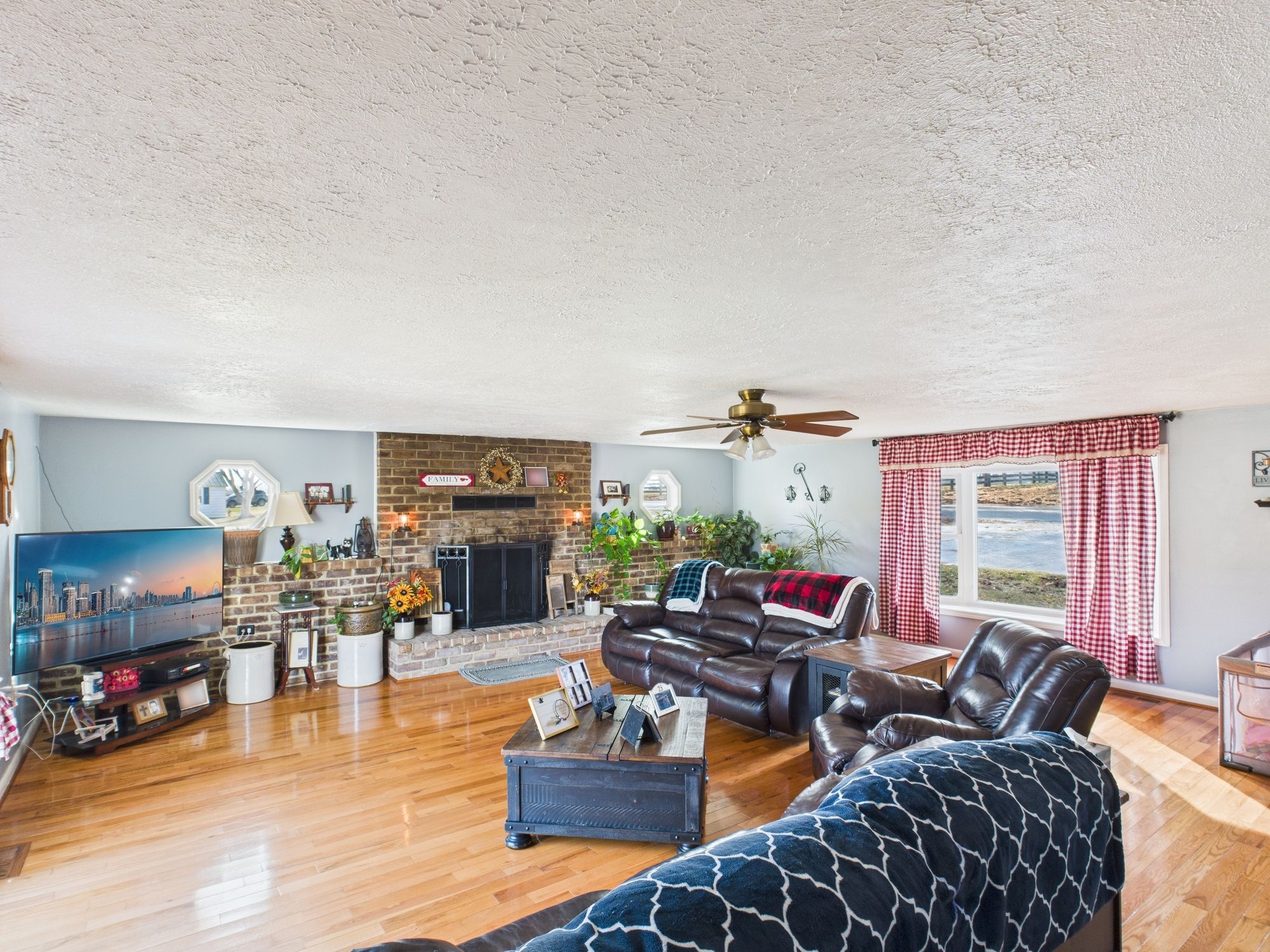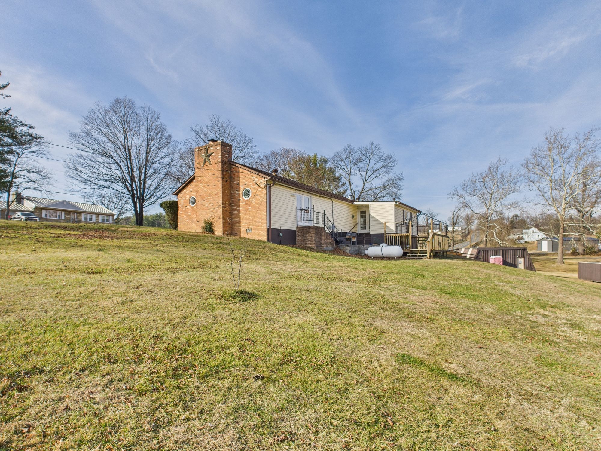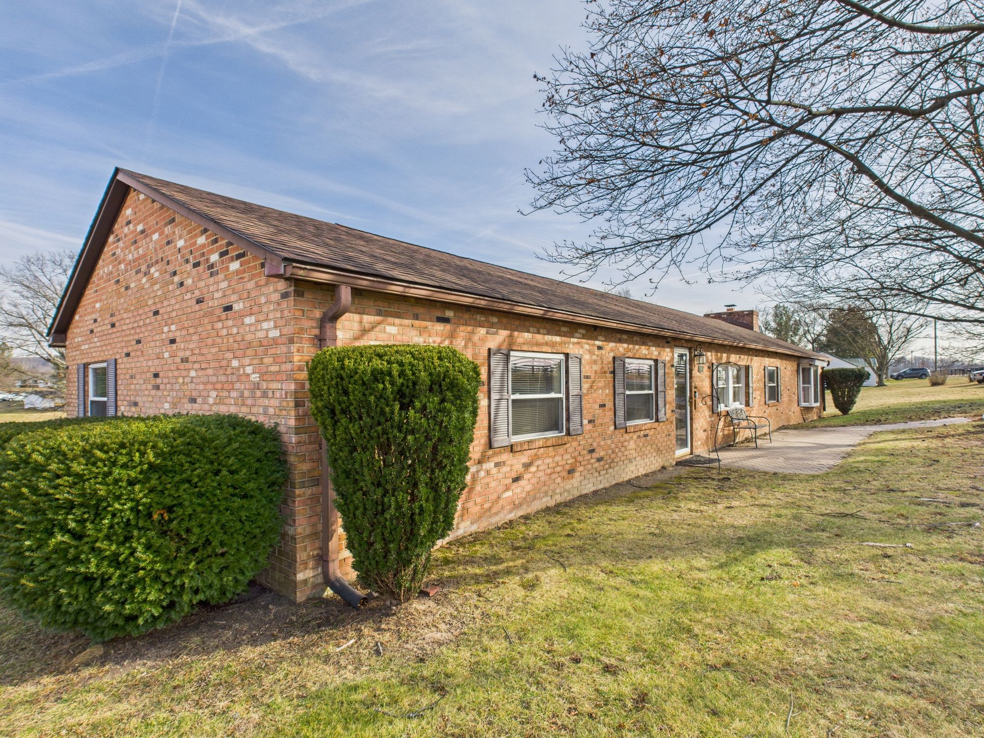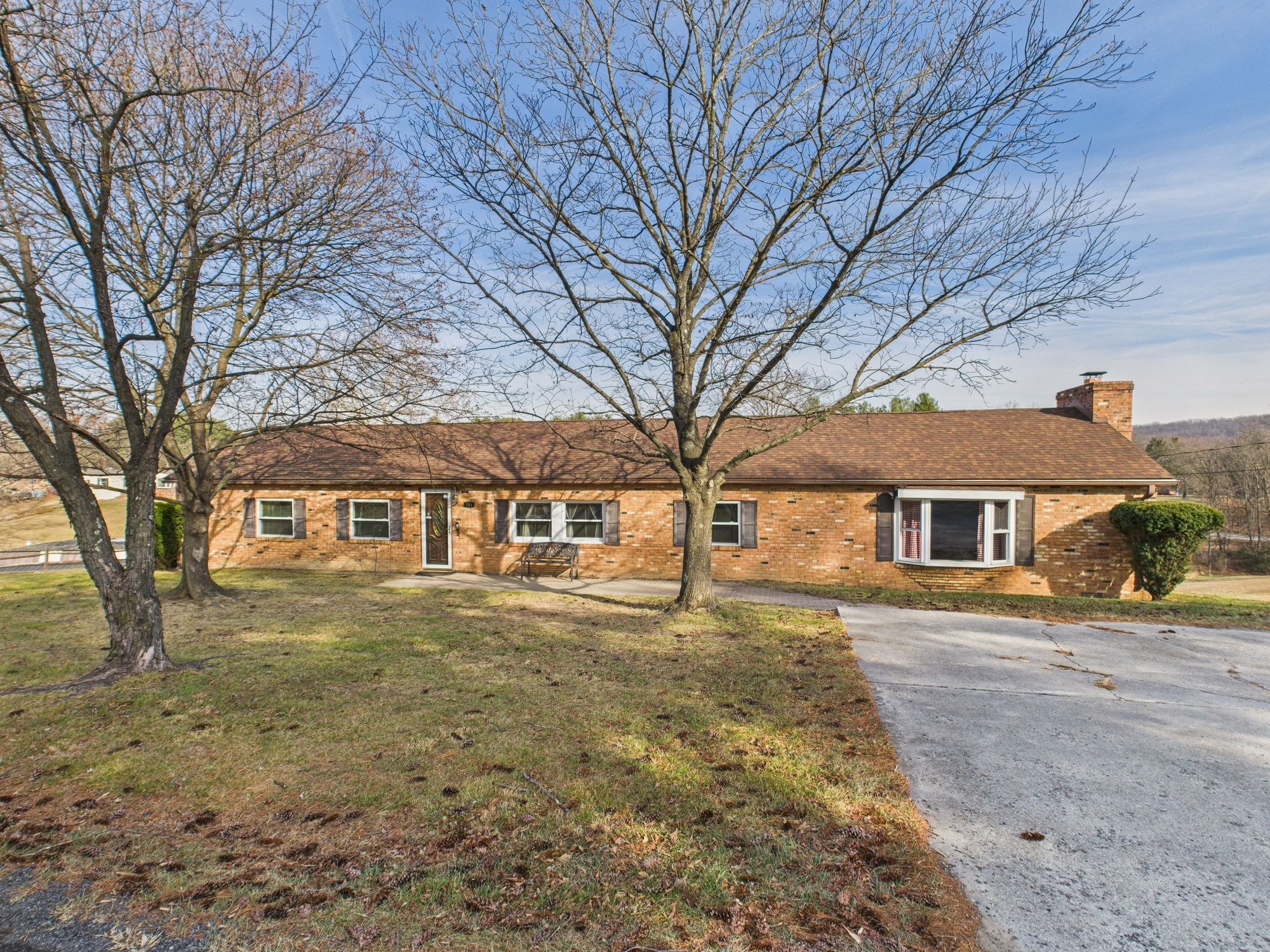 Situated in a highly desirable area just off Rt. 522, this Ranch on unrestricted land offers an easy commute while maintaining privacy and space. This hybrid modular brick rancher features a newer architectural shingle roof, central air and heat, and both propane and wood-burning fireplaces for year-round comfort. Inside, you’ll find a spacious layout enhanced by a large living room addition, perfect for gatherings and everyday living. A rear sunroom addition provides a relaxing space to enjoy views of the backyard, while the rear deck extends your living area outdoors. The home was originally a 3-bedroom and has been thoughtfully reconfigured into a generous 2-bedroom layout by combining two bedrooms into one, offering flexibility to suit your needs. The septic system remains approved for a 3-bedroom home. Set on 0.81 acres of unrestricted land, the property also includes a substantial detached 2-car garage/workshop—large enough that it once housed the famous ‘Virginia Giant’ monster truck—making it ideal for hobbyists, mechanics, or anyone needing serious workspace. A rare opportunity in Frederick County with space, versatility, and a commuter-friendly location—this property offers endless potential.